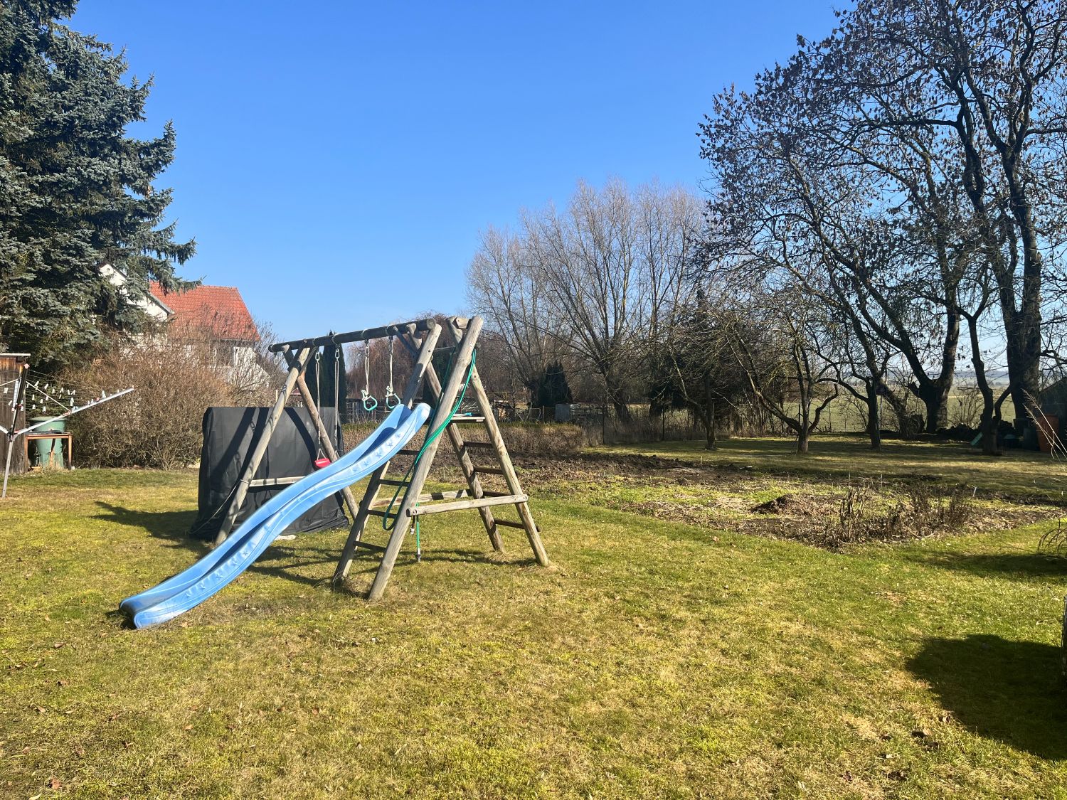 Das Grundstück befindet sich in einer Nebenstraße am Ortsrand vom Sondershäuser Ortsteil Hohenebra mit einem herrlichen Blick in die grüne Landschaft. Im Ort befinden sich Kindergarten, Schule und eine Gaststätte. Nach Sondershausen sind es mit Bus, Bahn oder Pkw nur wenige Minuten. Auch der Werra-Unstrut-Fernradweg führt direkt durch den Ort.